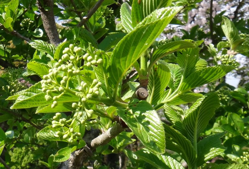 蕾が枝先に円錐状につく。葉はやや厚い。(2017/4/13)