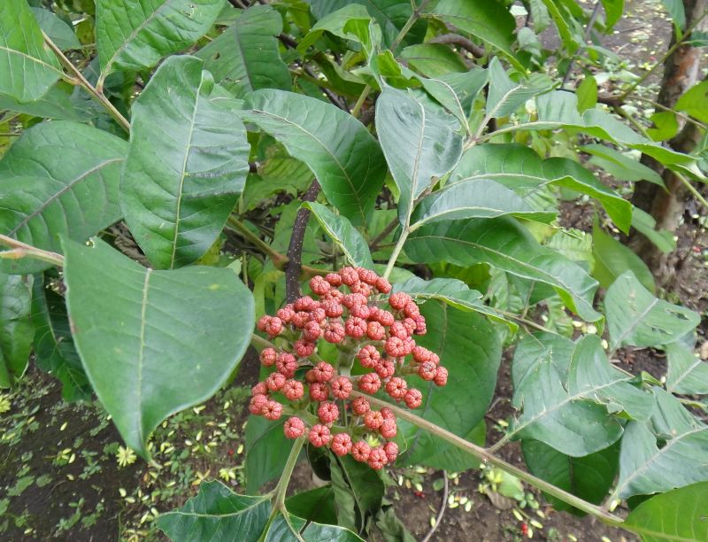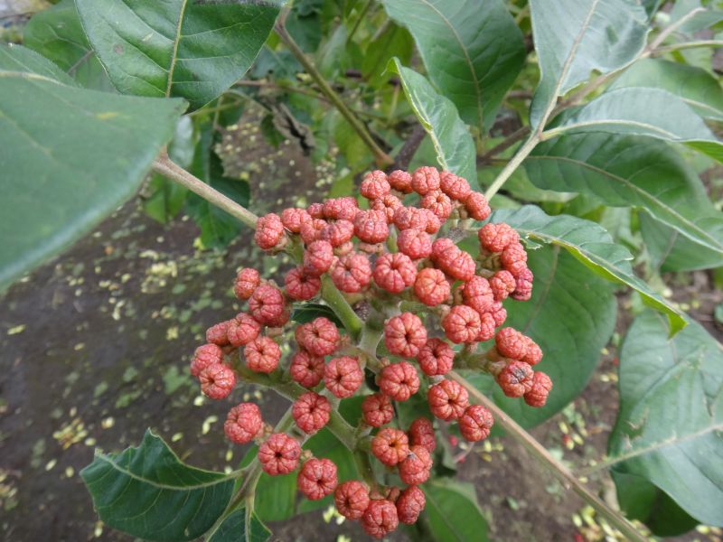 分果の表面には小さい凹凸があり、花序枝は太い。(2021/10/3)