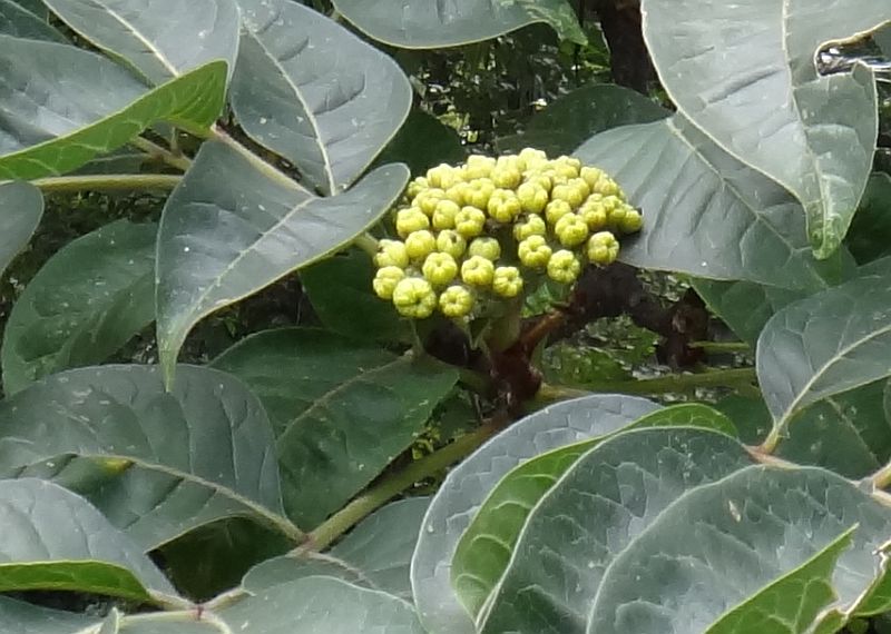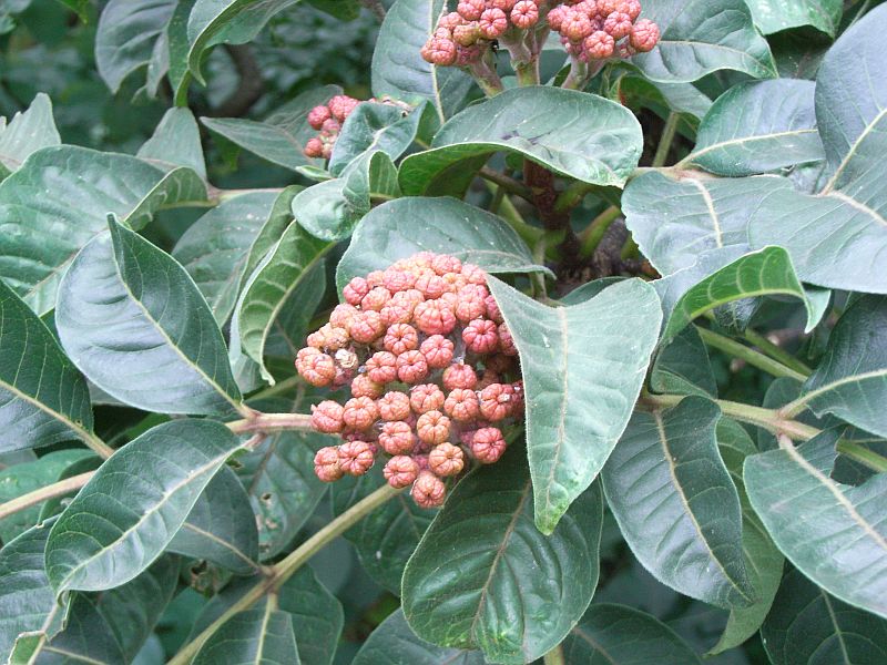 8月頃に枝先に円錐花序を出し、淡緑白色の小花をつける。