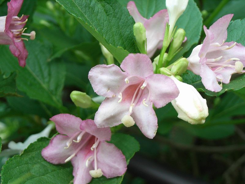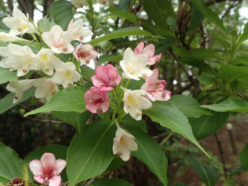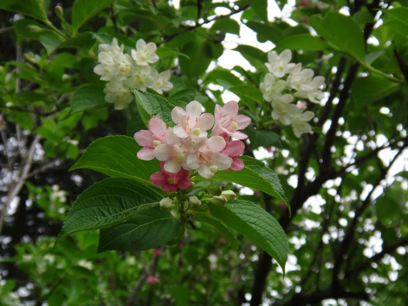 花が白いままで紅色にならない品種はシロバナハコネウツギと呼ばれる。