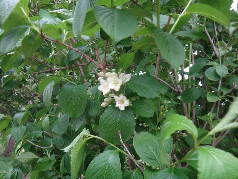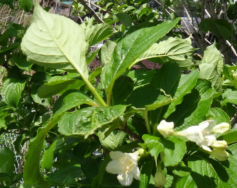 花が白いままで紅色にならないシロバナハコネウツギ。(2014/5/9)