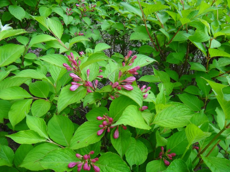 ニシキウツギ :花が白→紅色に変化、萼有毛、葉裏脈上に毛。