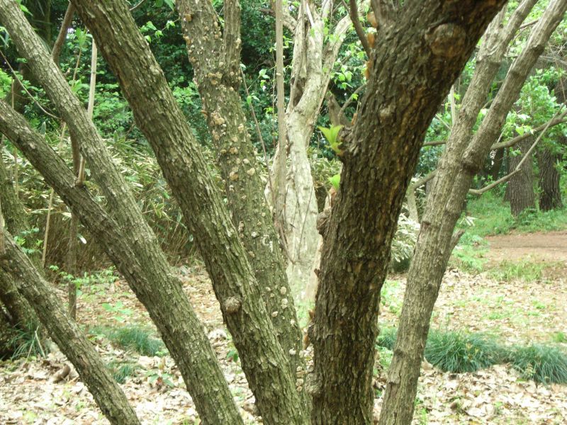 樹皮は灰褐色で、縦に裂け、幹は下部からよく分枝する。