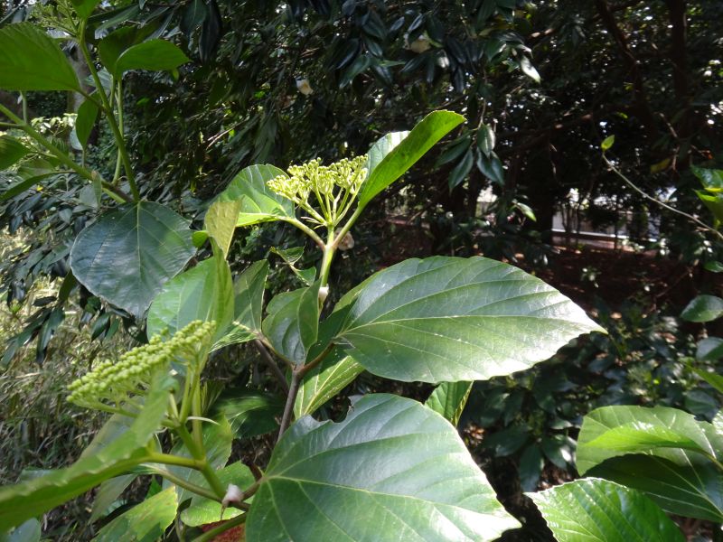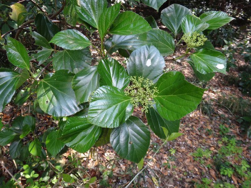 ガマズミ属、常緑、中木。