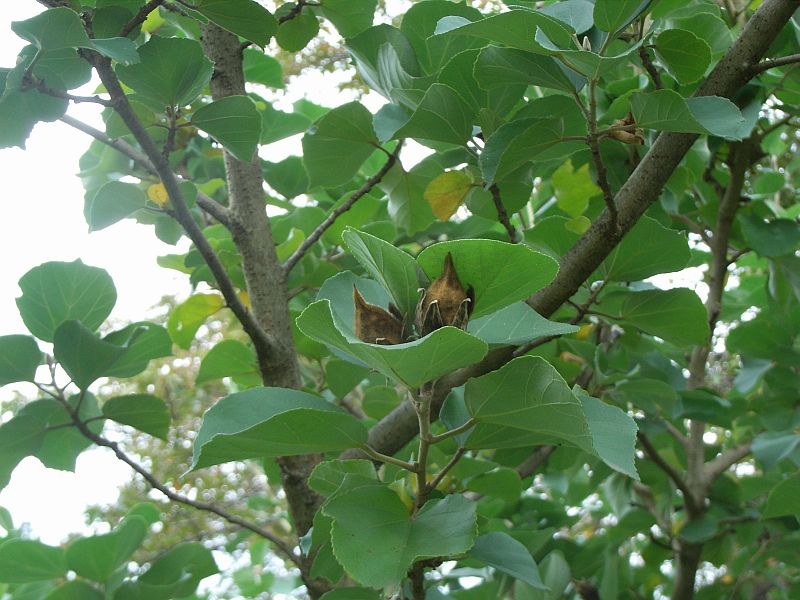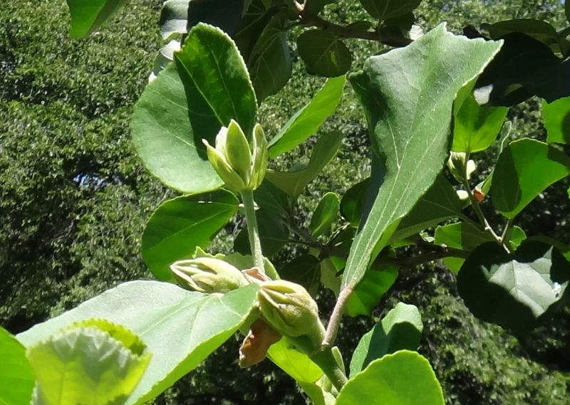 黄灰色の星状毛が表には散生し、裏には密生するので、