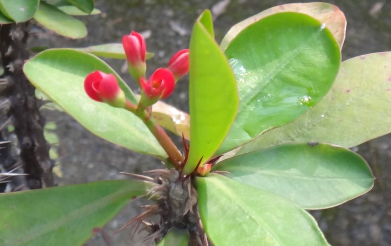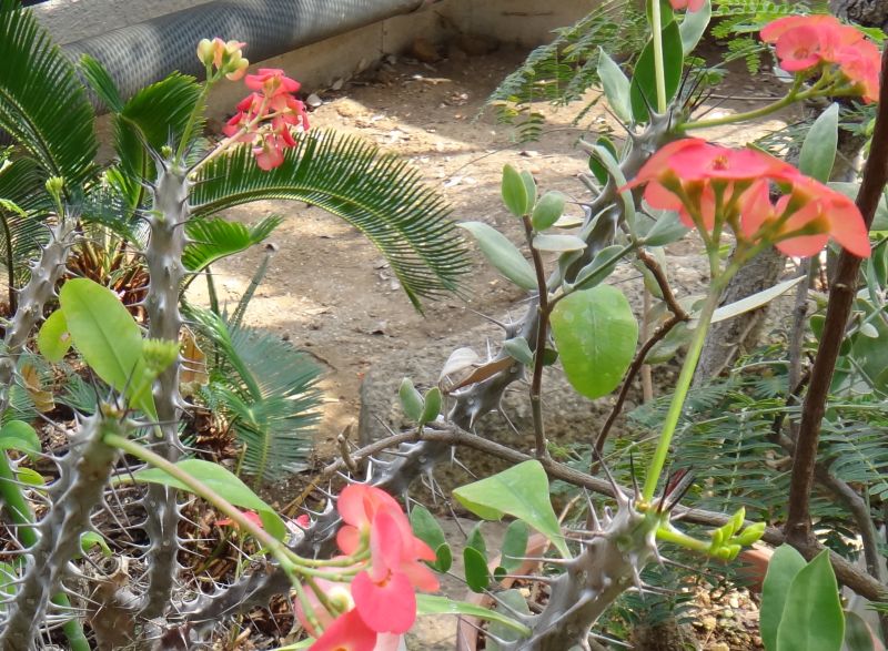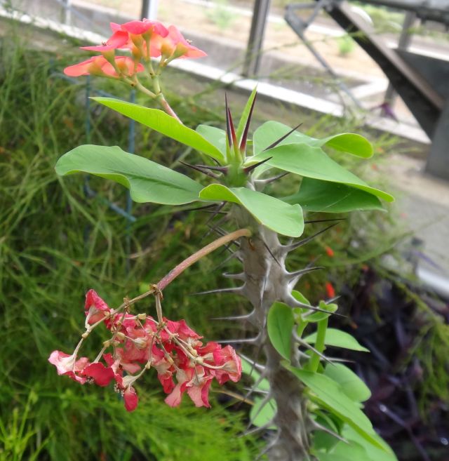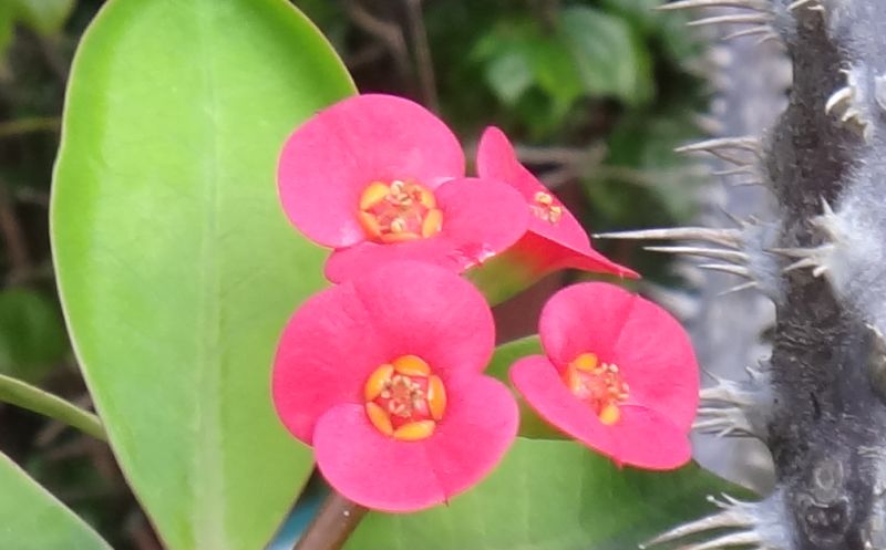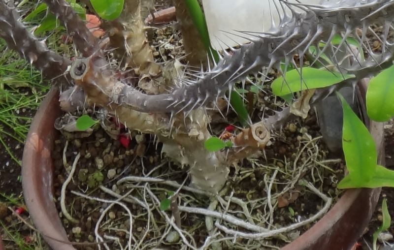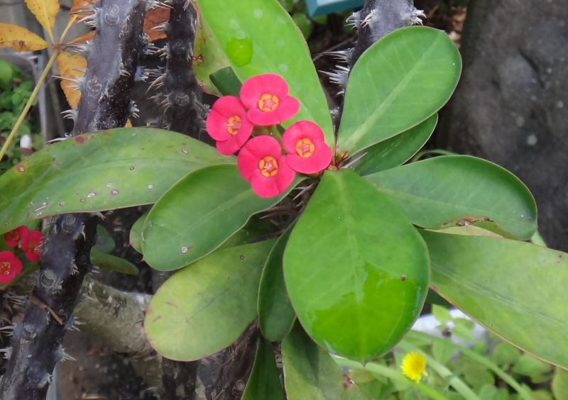 鋭く長い棘は葉のそばに赤褐色を帯びて生えてくるが、