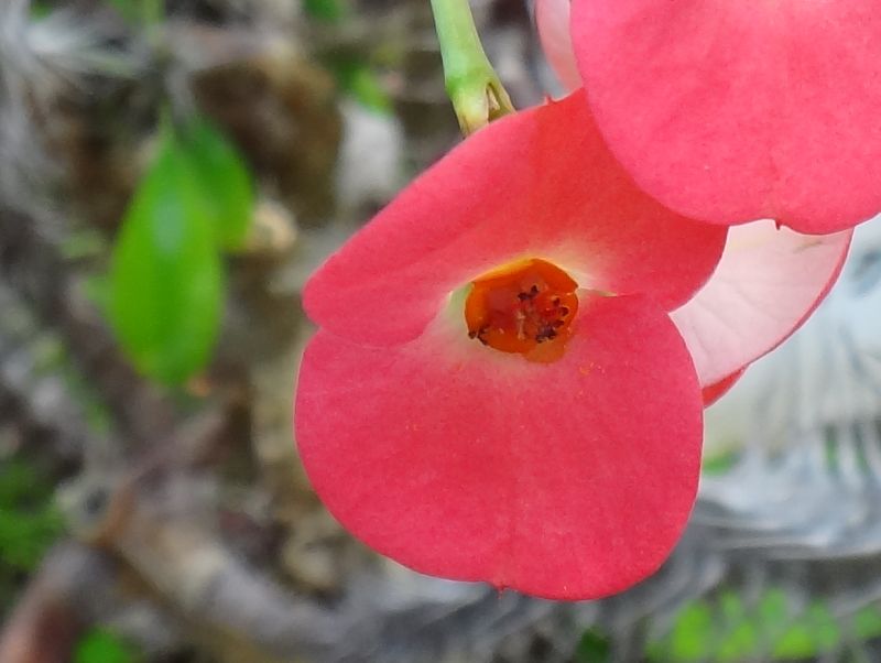 2枚の苞に挟まれてオレンジ色の杯状花序がある。(2017/3/30)