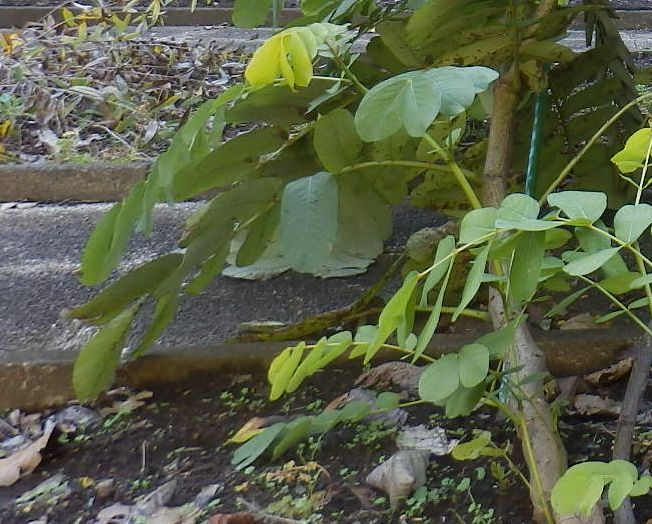 偶数羽状複葉の小葉は長楕円形で、先は尖らない。