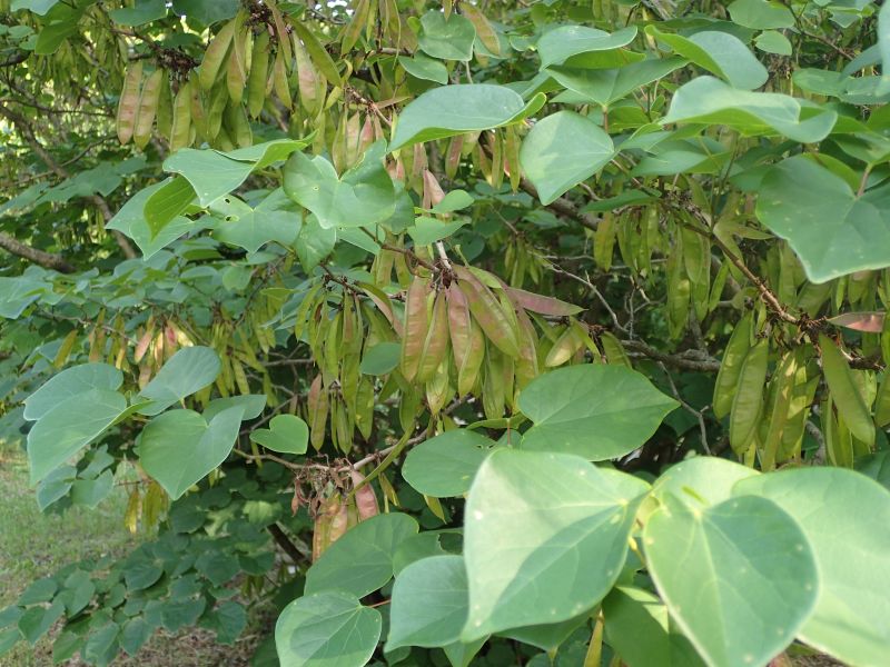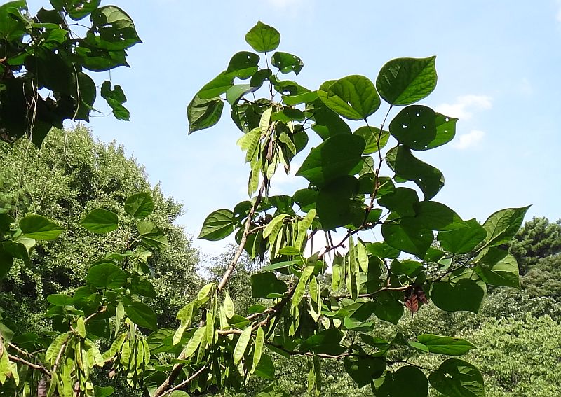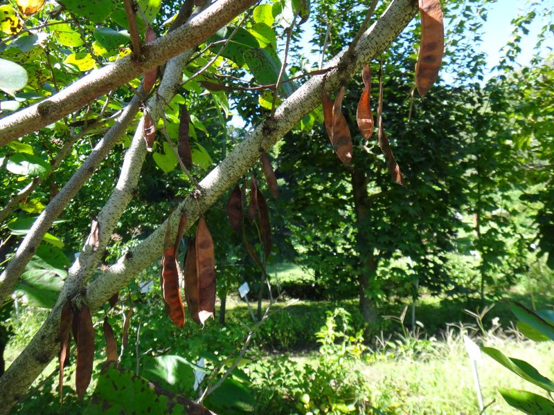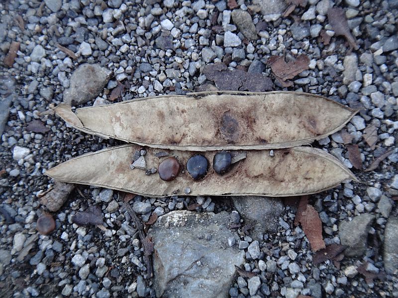 果実は長さ5〜7センチの豆果で、円形の扁平な種子が入っている。
