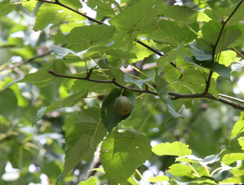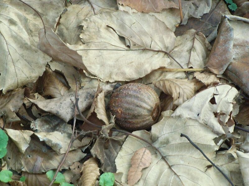 果実は堅果で丸く、褐色に熟す。