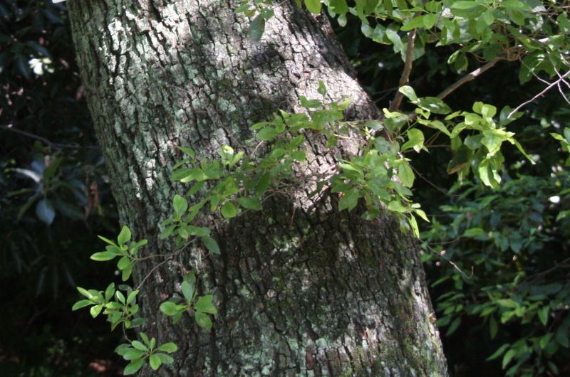 樹皮は紫褐色で、不規則に浅く裂けてはがれ落ちる。