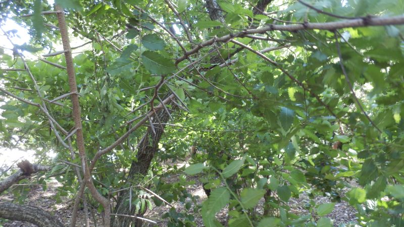 長さ7〜8センチの大きな棘が互生する。樹皮は灰褐色。