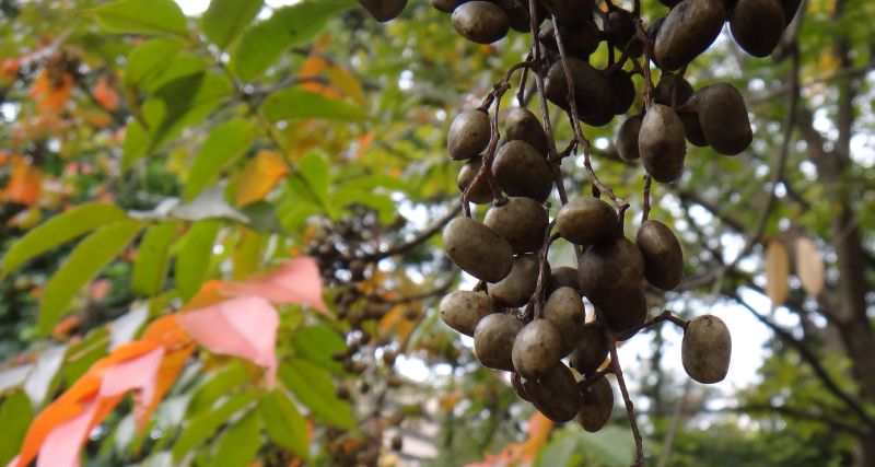 果実は、緑色→褐色→灰色 と変色してゆく。(2015/10/28)
