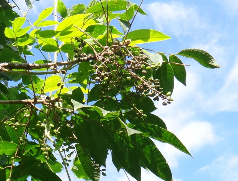 枝先の円錐花序に黄緑色の小さい花が咲く。