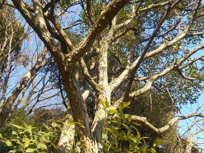 樹皮は褐灰色〜暗赤色で、平滑であるが、老木では裂け目ができる。