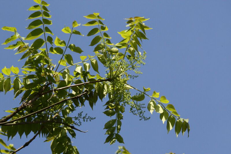 初夏に黄緑色の小さい花を円錐状に多数つける。