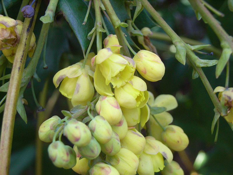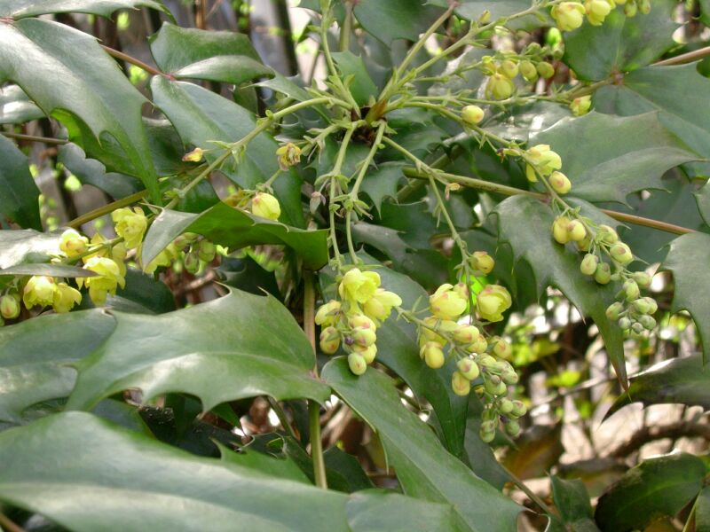 ヒイラギナンテン属、常緑、低木。