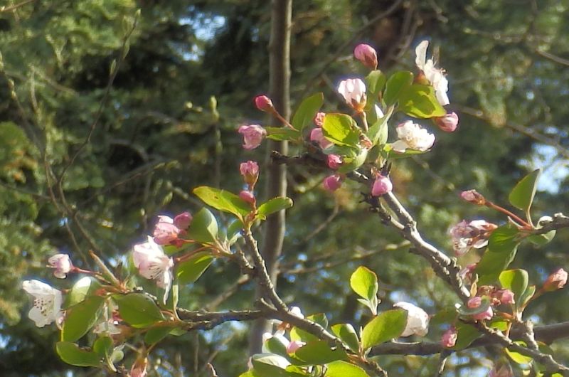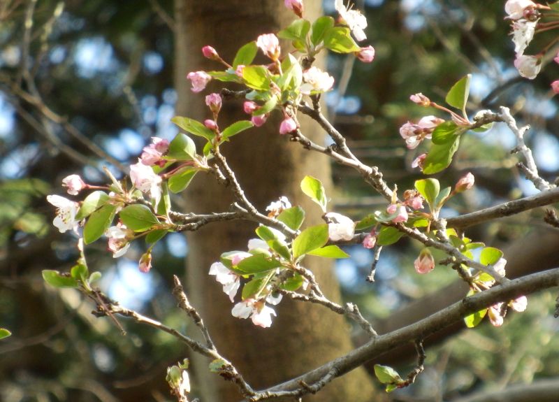 色も淡紅色で派手であるが、結実が希である点などが異なる。