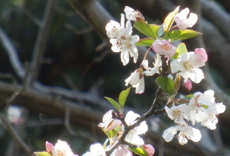 短枝の先に白い5弁花が束生する。(2017/4/13)