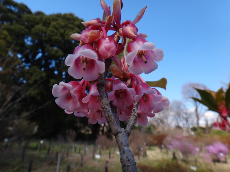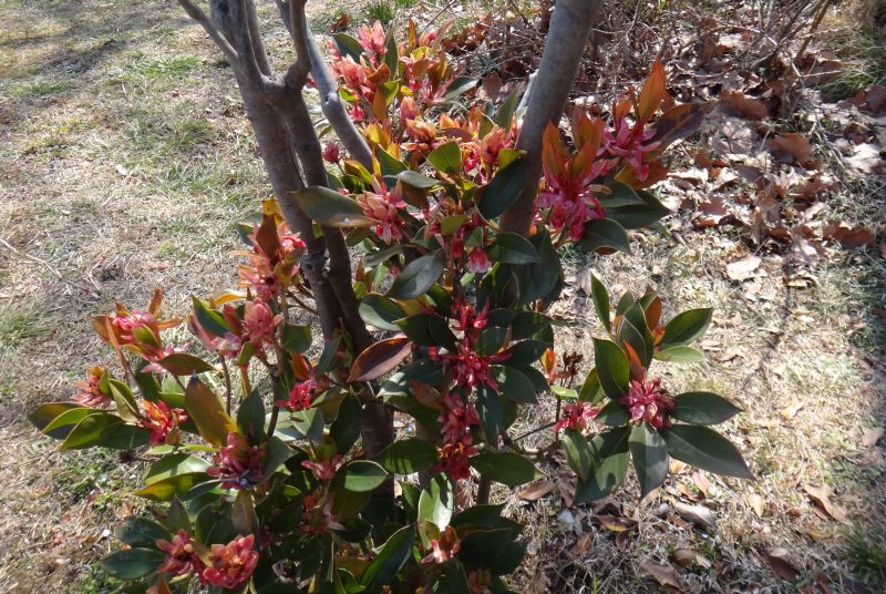 釣鐘形の花と若葉が枝先に束生する。(2017/3/10)