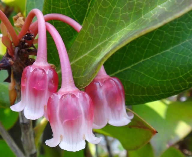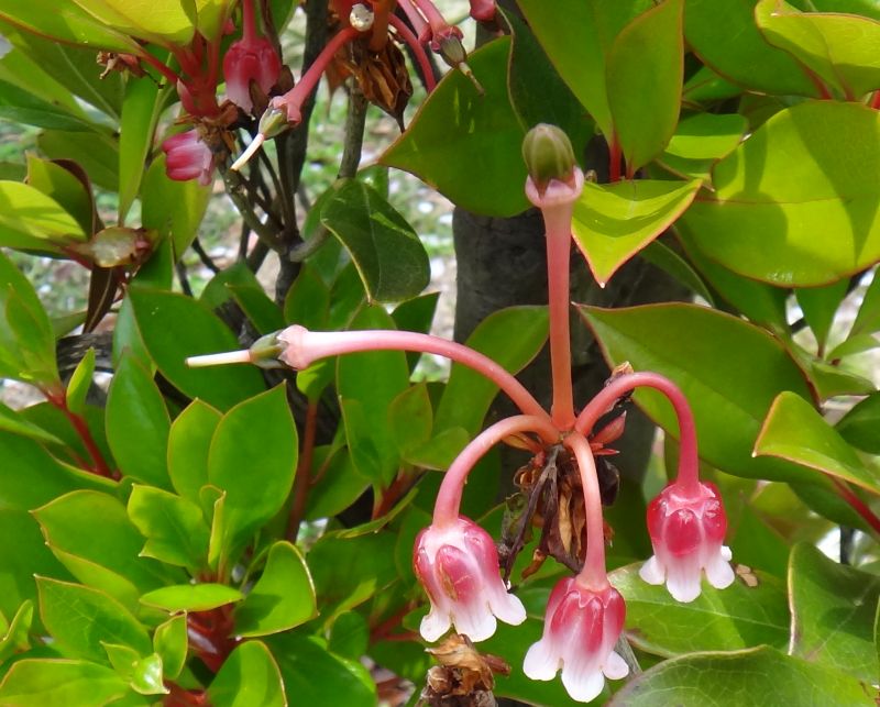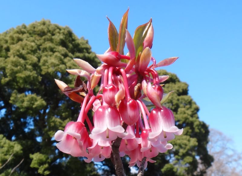 花は蝋細工のような鐘形で、基部は紅色。(2017/3/10)