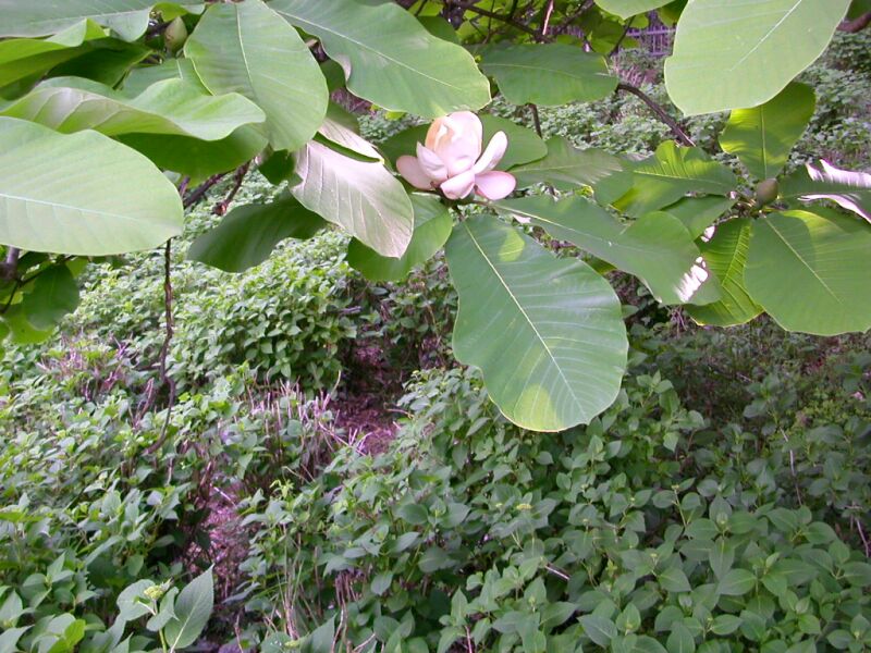 葉は長さが40センチもあり、裏は粉白色を帯びる。(2015/5/10)