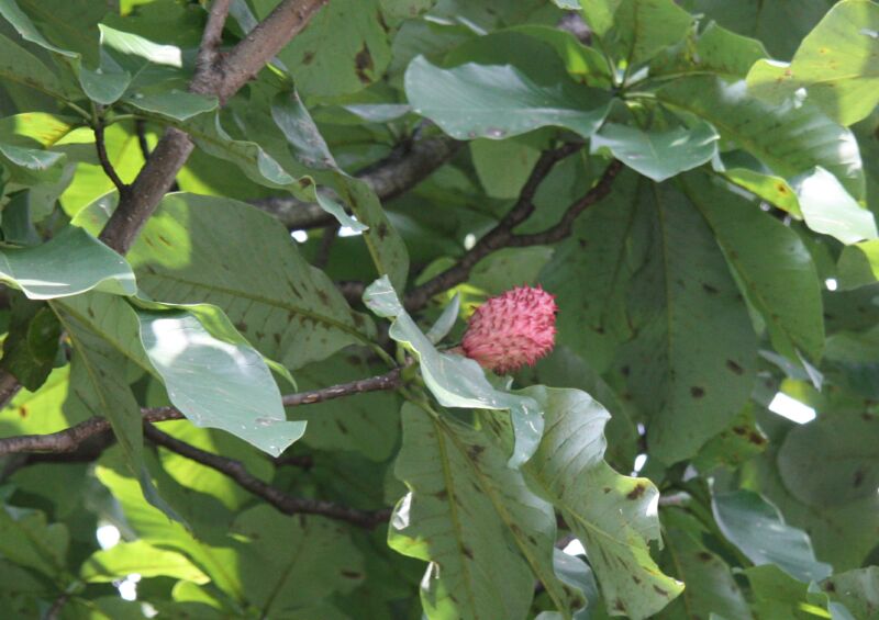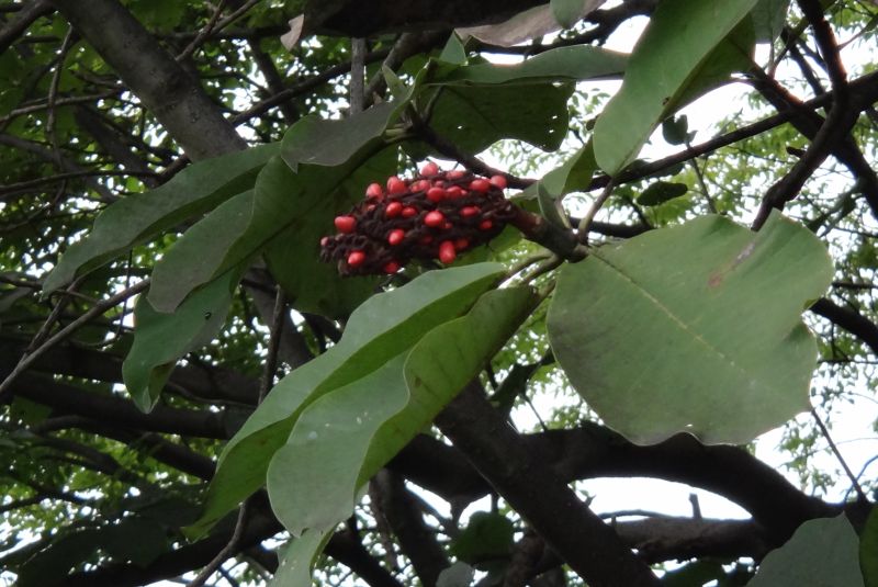 熟すと袋が破れて赤い種皮で覆われた種子が現れる。(2015/9/16)