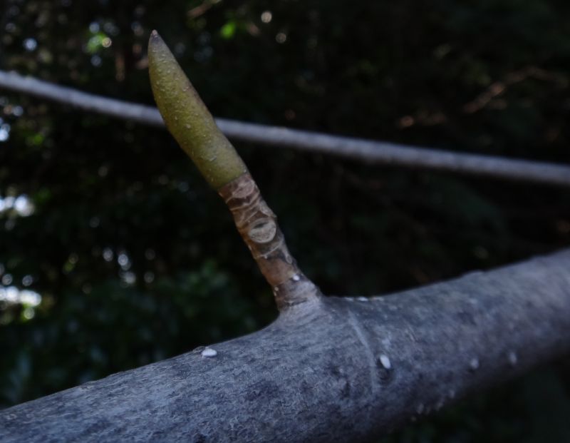 頂芽は長さ3センチ以上あり、芽鱗は革質。大きな葉痕がある。