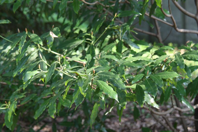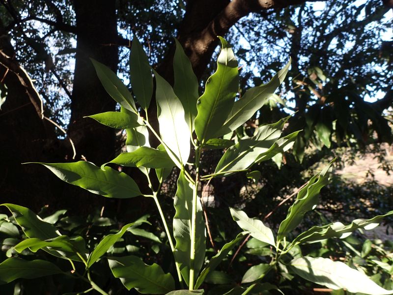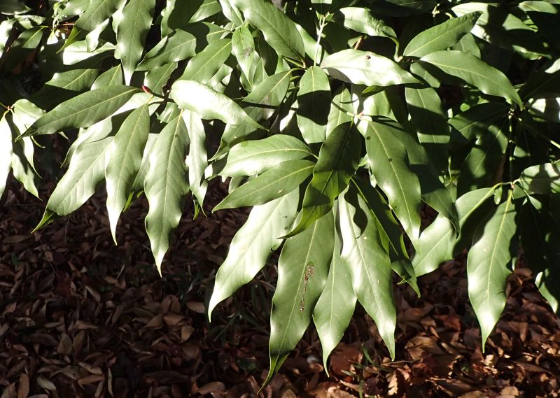 葉は互生し、長さ8〜15センチの長楕円形で、光沢があり、