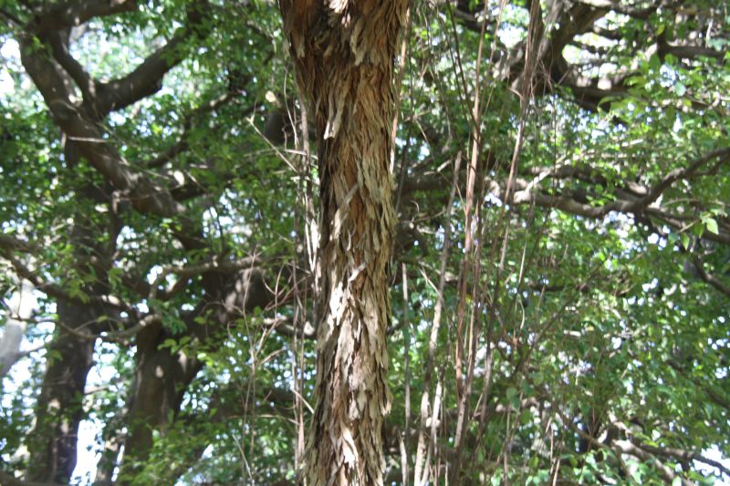樹皮は灰褐色で、縦に薄く裂けてはがれ落ち、 初秋に葉腋の短い総状花序に黄白色の花をつける