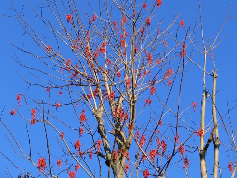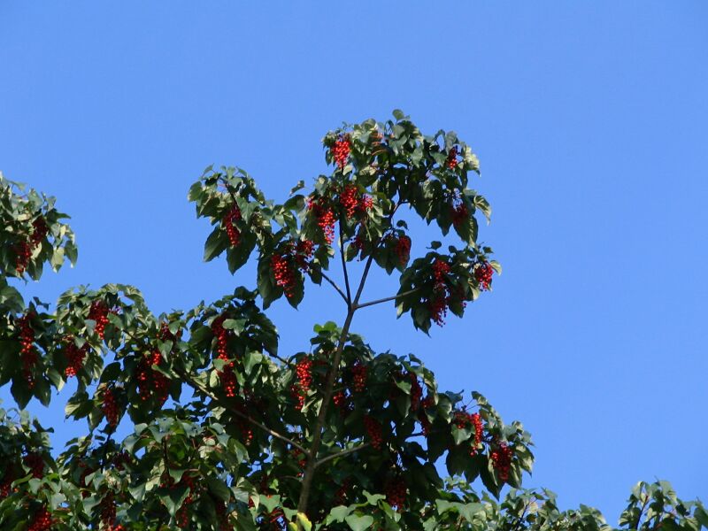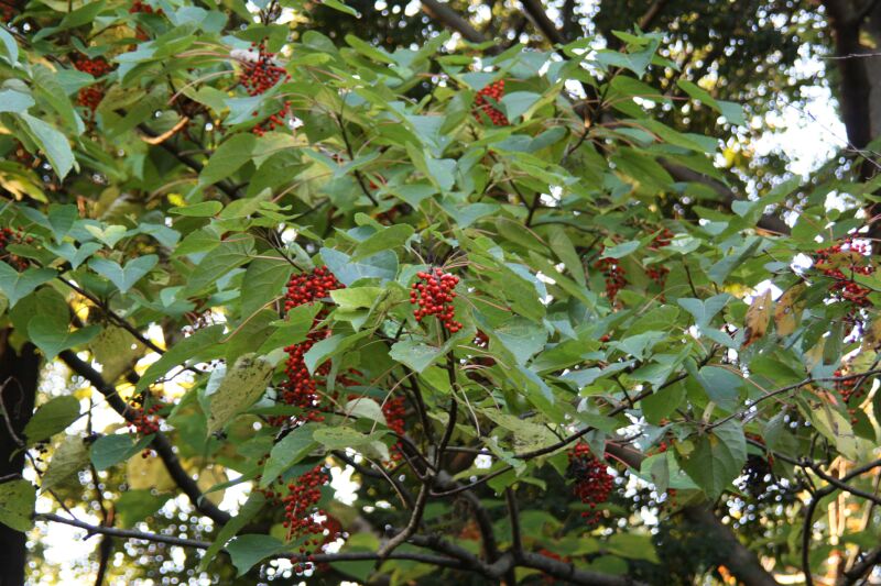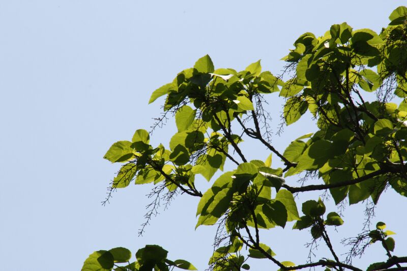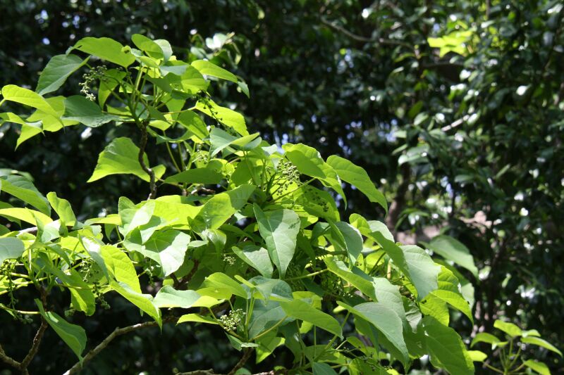 雌雄異株で、春に枝先に円錐花序を垂れ、黄緑色の花を咲かせる。