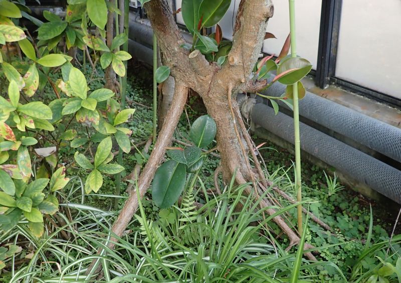 樹皮は淡褐色で、不定根が下向きにのびる。(2017/1/19)