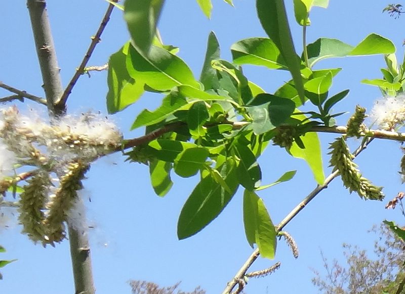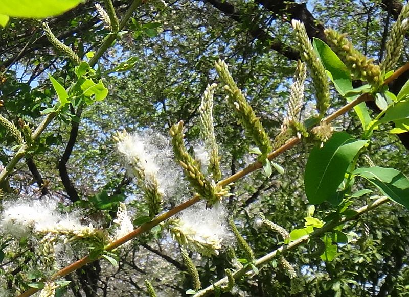 葉腋に朔果をつけ、 5月に成熟すると種子のついた白い綿毛が出る。