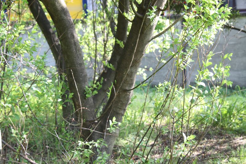 株立ちとなる。樹皮は暗灰色でなめらかであり、新枝は黄褐色で