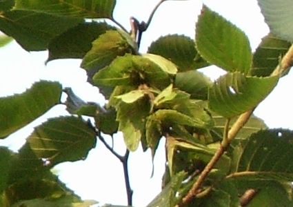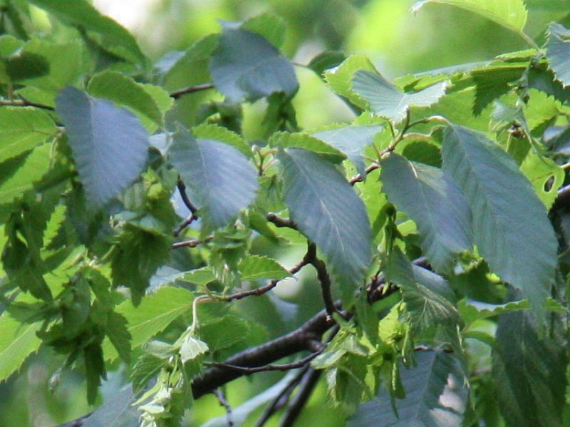 サワシデ:葉は先の尖った広卵形、葉基部心形、雄花黄緑色、果穂閉じる。