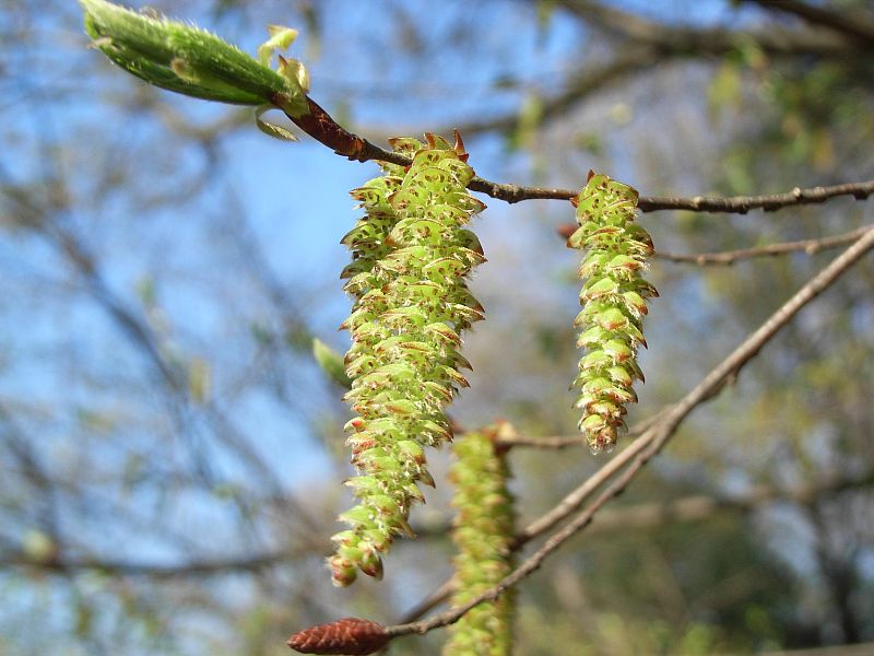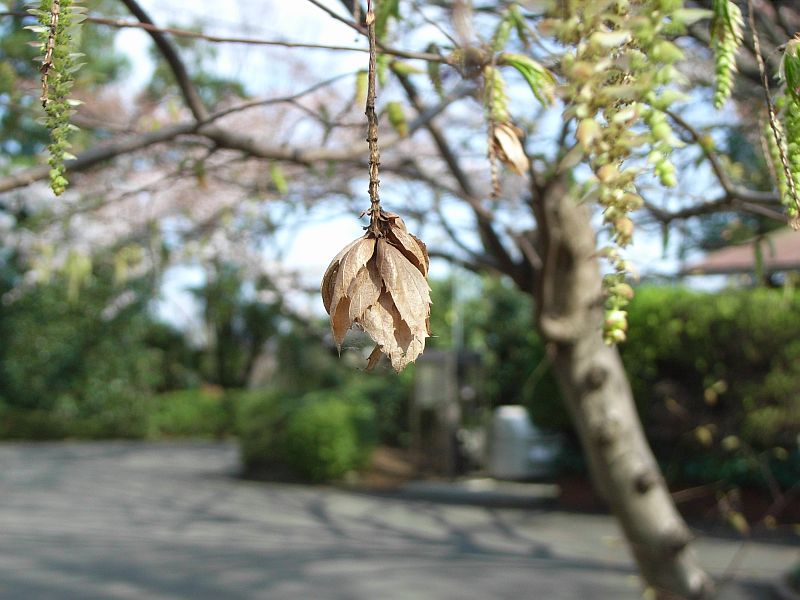 前年枝の葉腋から長さ4〜5センチの雄花序が垂れ下がる。