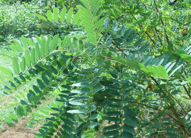 長さ10〜30センチの奇数羽状複葉が互生し、小葉は全縁の長楕円形で、