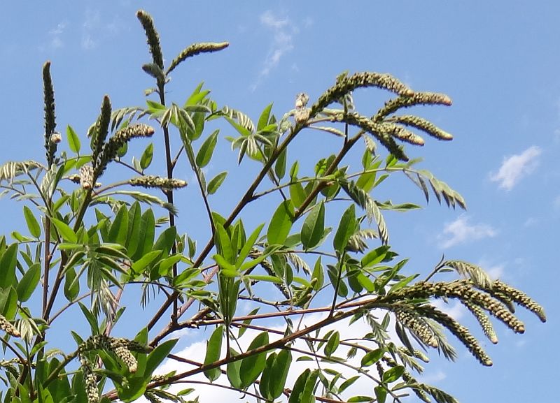 初夏に枝先に長さ6〜20センチの穂状花序を斜上させ、