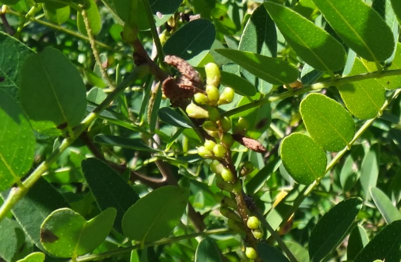 マメ果は長さ1センチぐらいで表面にいぼがあり、