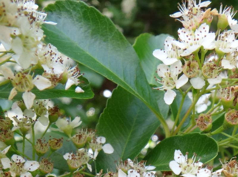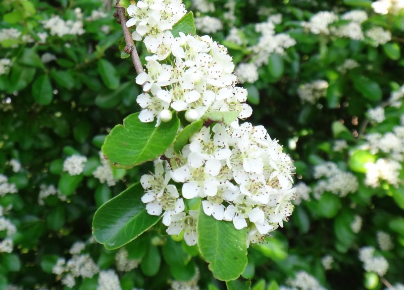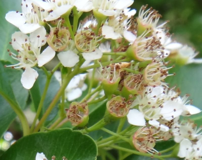 春から夏にかけて、枝先の直径3〜3.5センチの散房花序に、