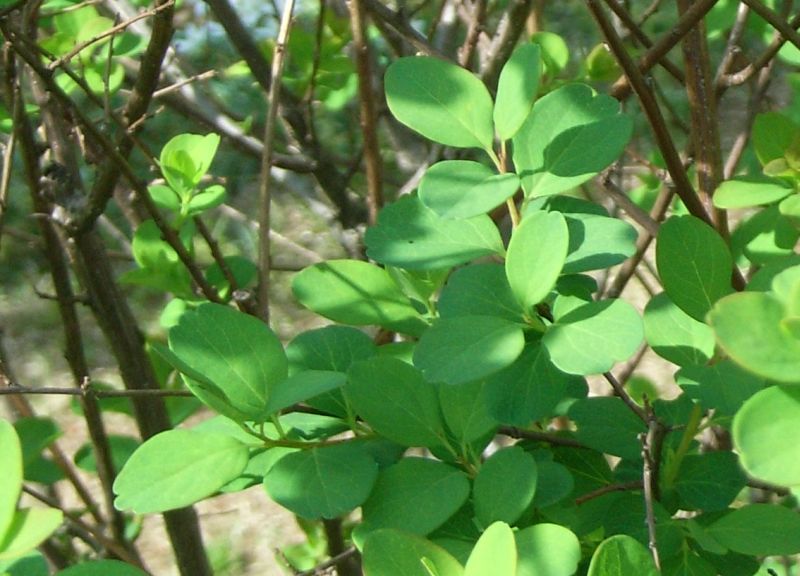 葉は倒卵状長楕円形〜円形で、上半部に目立たない鋸歯のあることが多い。