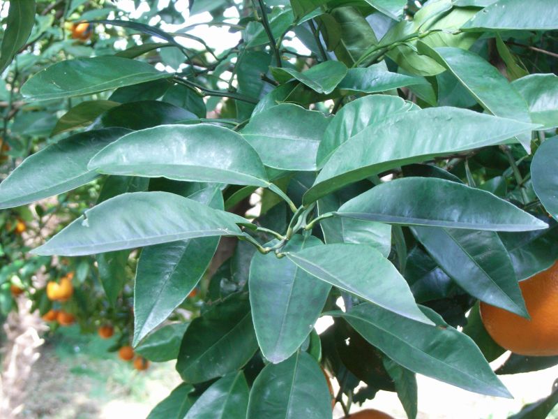 葉は先のとがった長卵形で光沢があり、葉柄に狭い翼がある。