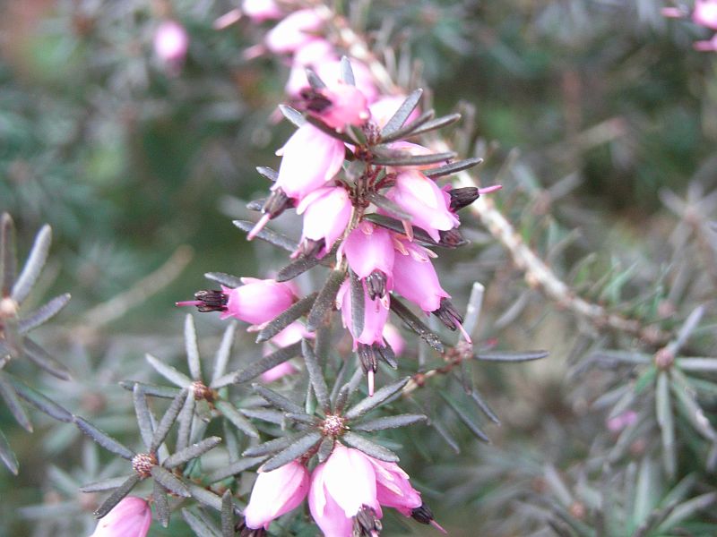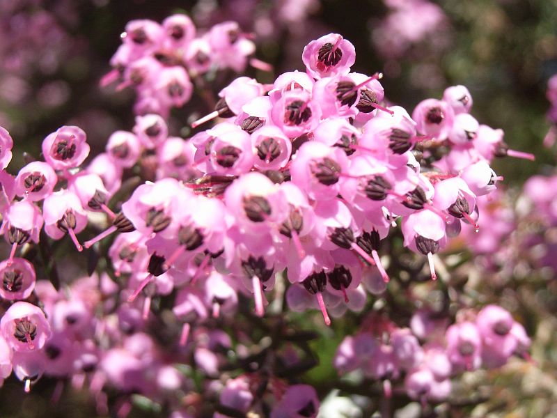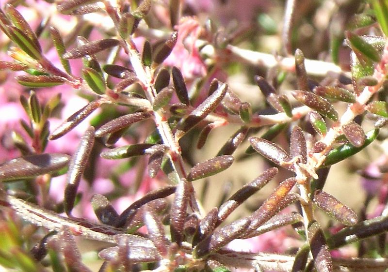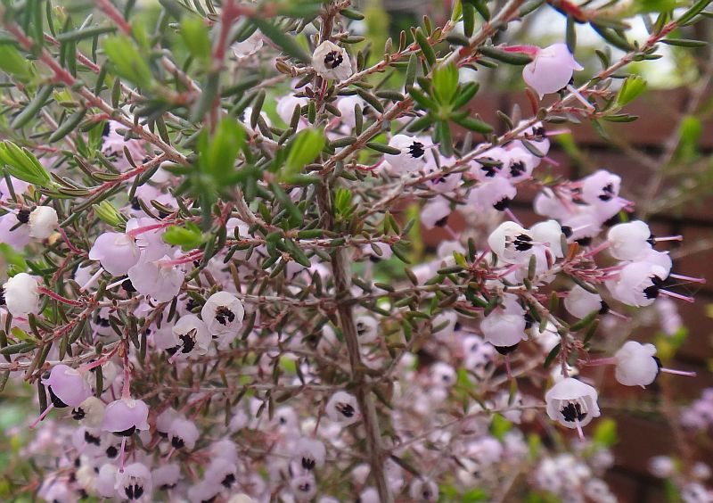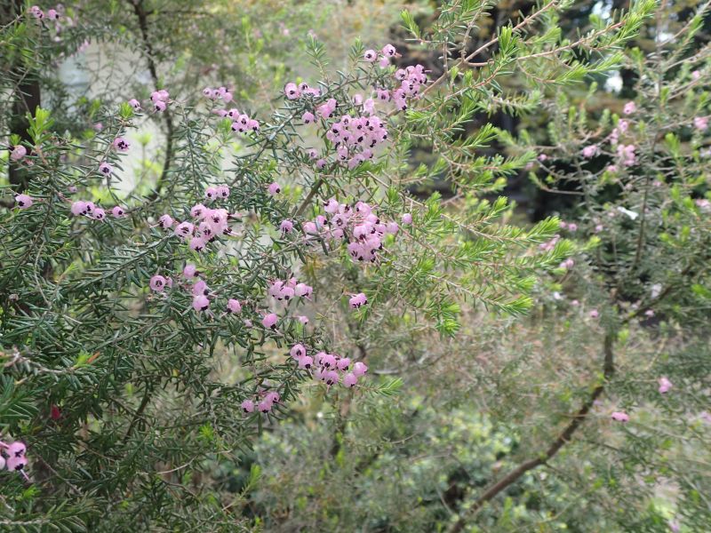 葉腋に壺形で淡紅色の小さな花を散房状に密につける。