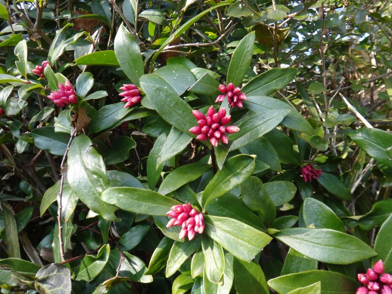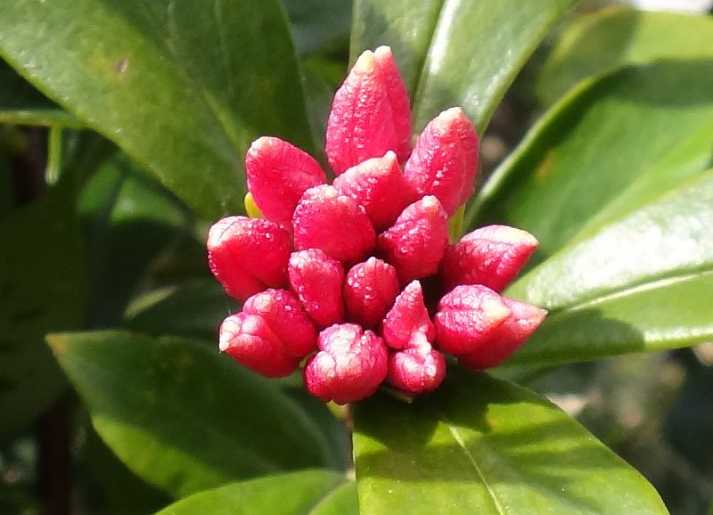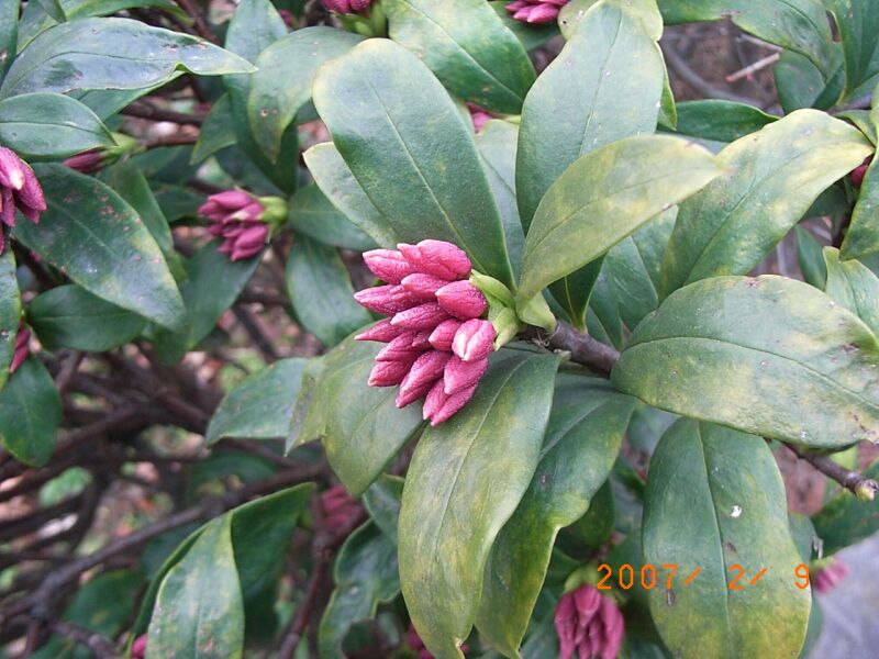 冬の間中赤い蕾で過ごす。(2015/2/21)