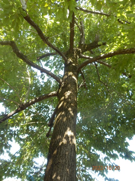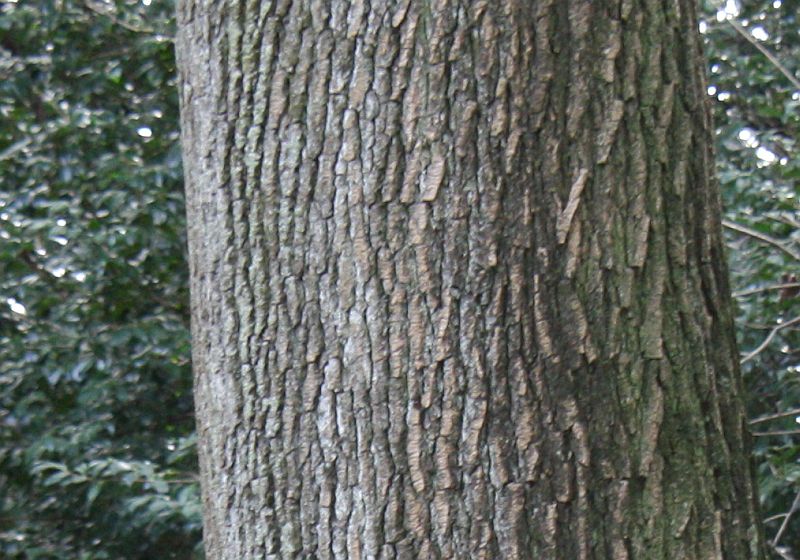 樹皮は灰白色で、縦方向に長方形の割れ目がはいる。
