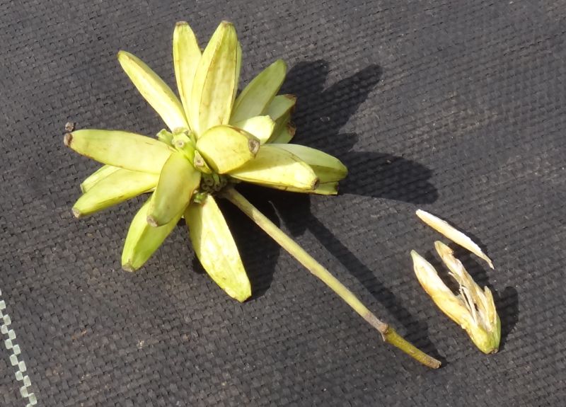 果実は小さいバナナの実が球形に集まったような集合果。(2016/10/20)