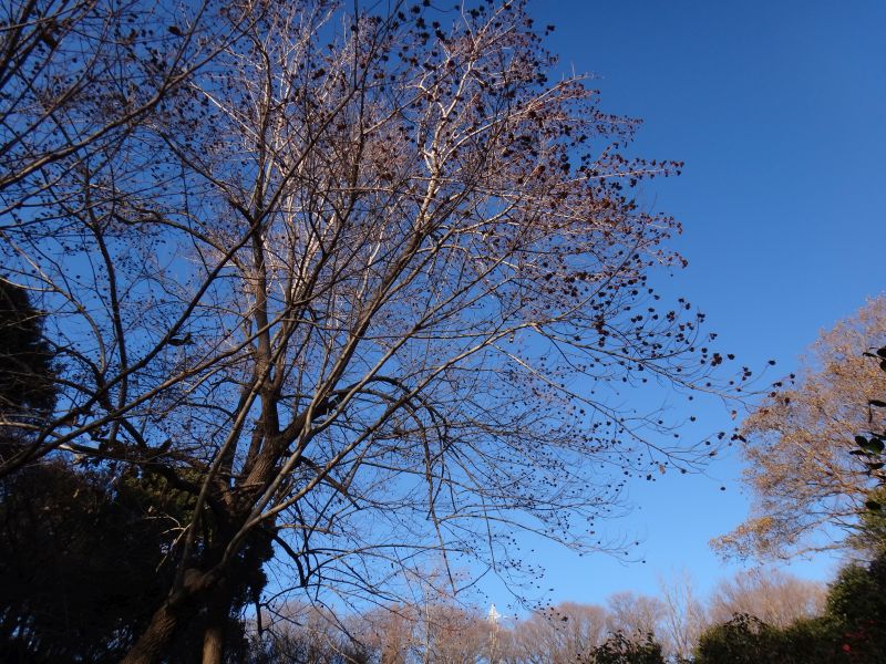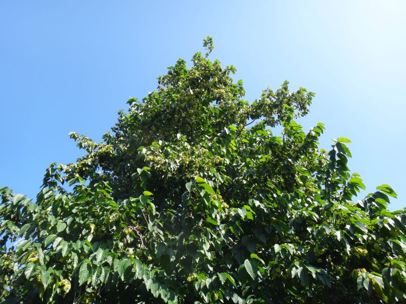 球形に集まった集合果をつけ、秋に淡黄褐色に熟す。