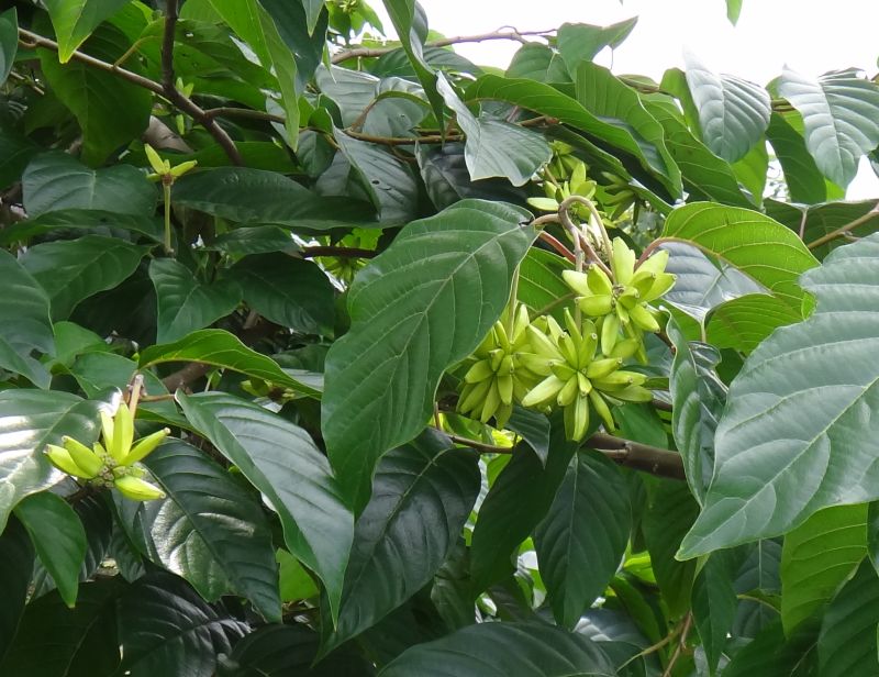 長さ2〜2.5センチのバナナ形の果実が長い柄の先に
