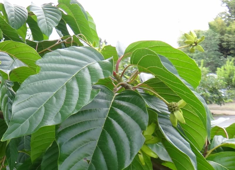 葉は大きな楕円状卵形で、葉脈が明瞭。