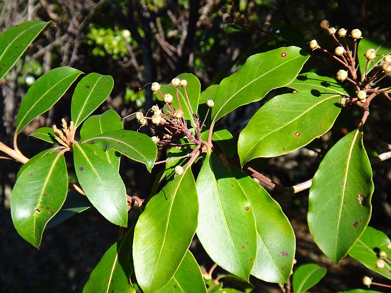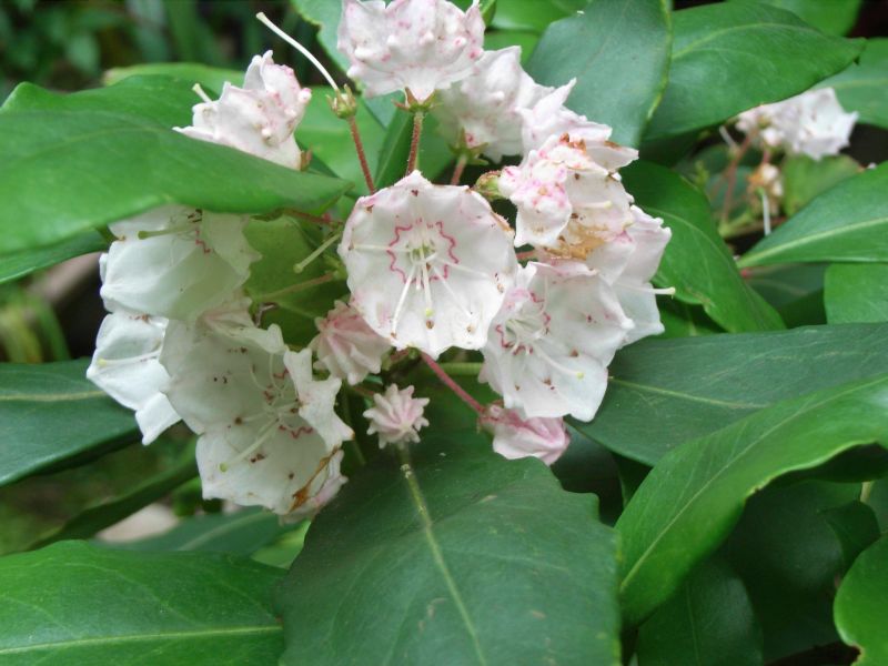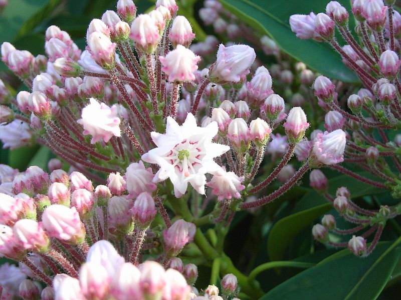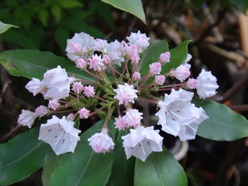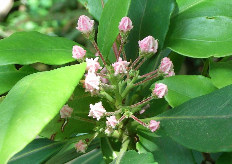 カルミア属、常緑、小高木。